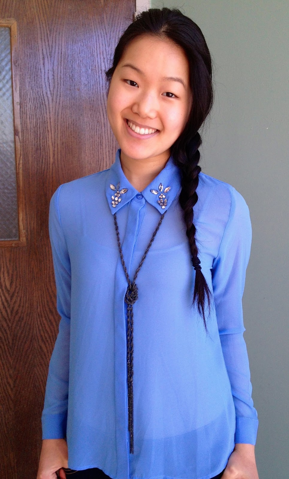 I planned this outfit around the shirt. I haven't gone clothes shopping in a long time, so when I saw this affordable, trendy and sophisticated blouse at Forever 21, I knew I had to get it! Thanks to Xuewei, I've been looking at brands I normally wouldn't shop at. I don't have anything in this cornflower blue color. I usually buy clothes in only cool tones so that they will blend in well with the rest of my wardrobe. My favorite part about this shirt, however, is the crystal collar. It's just a tiny bit of glam - perfect for days when you want to play up the dressiness. The dark jeans serve as the canvas for the shirt and the leopard flats are just another pop of fun. I'm looking forward to wearing these flats as neutral statement pieces in Spring - neutral because of the coloration that matches everything from black to white to neon and statement because of the cute animal print.